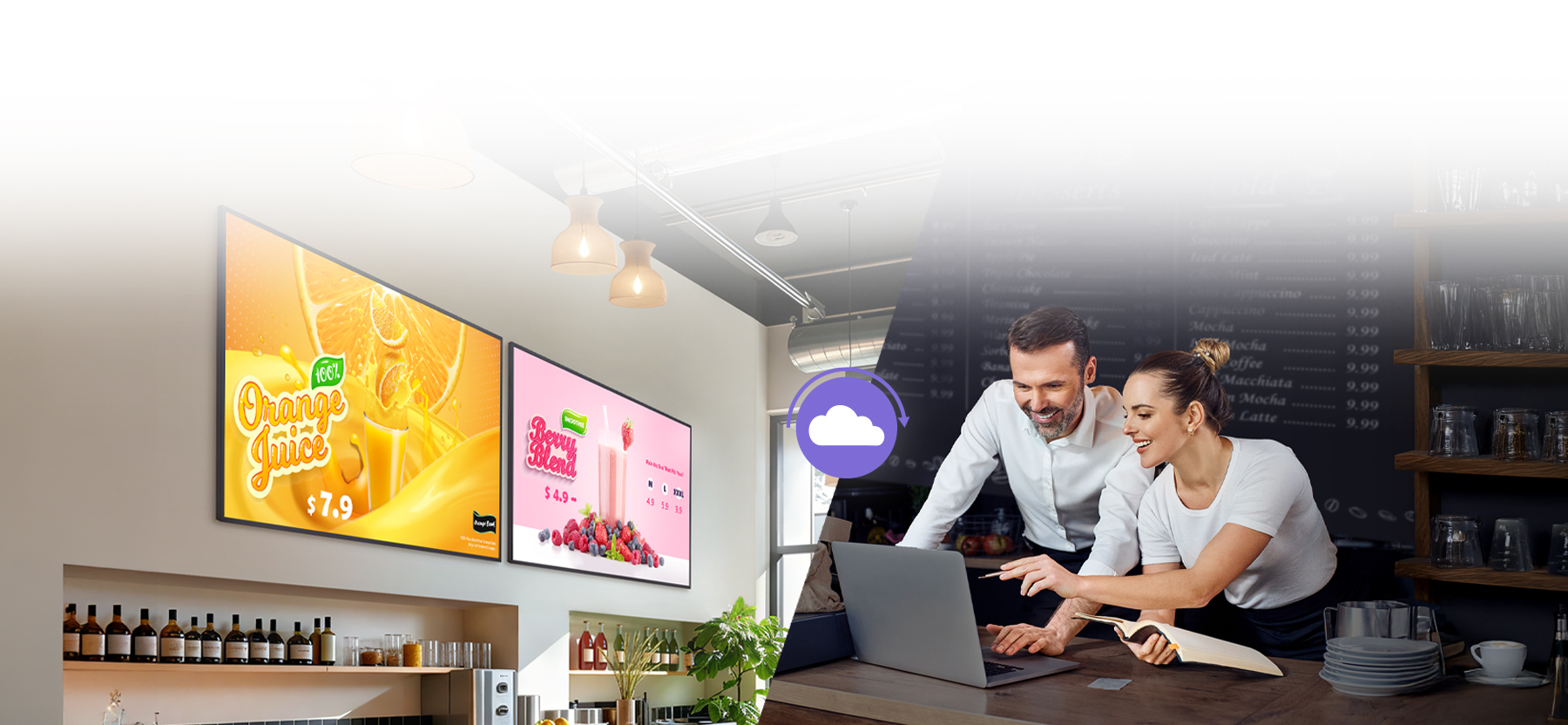 LG SuperSign Cloud comes with a range of stylish widgets like weather, date, time, and menu boards. Especially with its motion image effects and text animations, users can bring visuals to life and create rich, context-aware content.