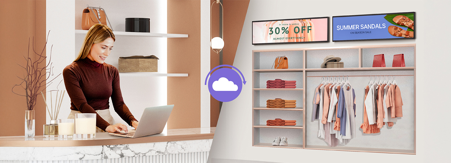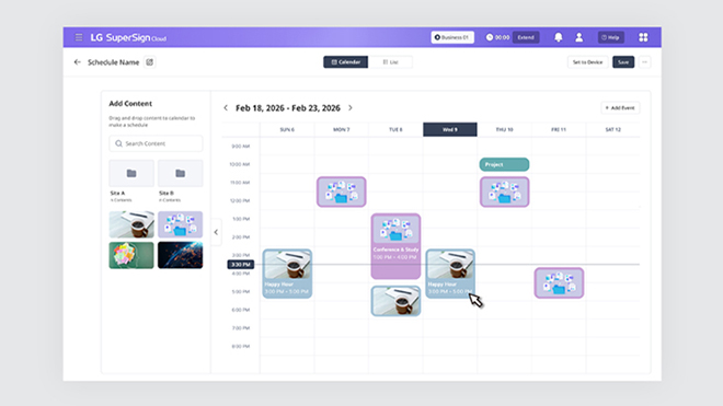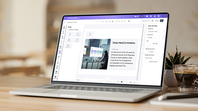 By utilizing a content management software solution, LG SuperSign Cloud, businesses can reduce the time spent on aggregating separate sources for content creation. LG SuperSign Cloud is a software solution that provides various efficient content management features with flexible editing functions for users to create and distribute content on their signage displays effortlessly.