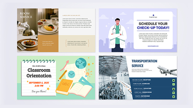 LG SuperSign Cloud offers content templates designed for a wide range of industries, including restaurants (menu boards), education, transportation, healthcare, and retail. Users can easily create and manage content using these ready-made templates, and further customize them by adding their own logos, images, and other elements to suit their specific business environment.